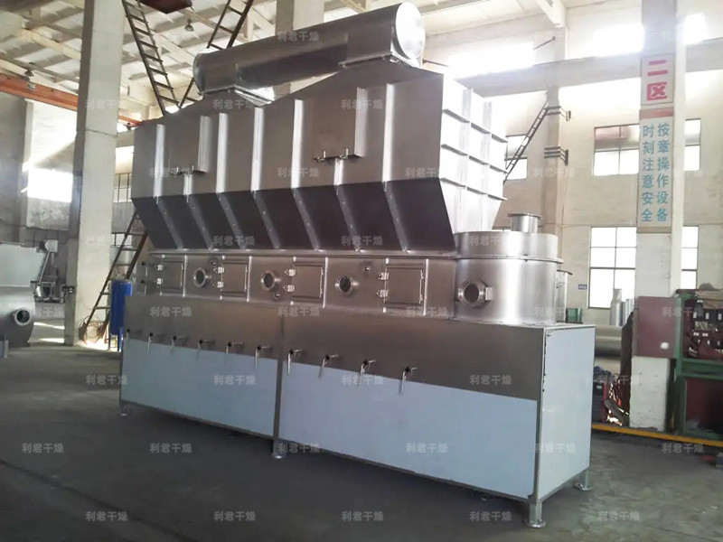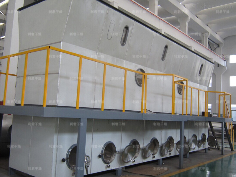 潔凈的熱風(fēng)經(jīng)閥板分配進(jìn)入床體內(nèi),從加料器進(jìn)入的濕物料被熱風(fēng)形成沸騰狀態(tài)。由于熱風(fēng)與物料廣泛接觸,增強(qiáng)了傳熱傳質(zhì)的過程,因此在較短時間內(nèi)就可干燥。如用連續(xù)型,物料從床體的一頭進(jìn)入,經(jīng)過幾十秒至幾分鐘沸騰干燥,自動從床體另一頭流出。本設(shè)備一般進(jìn)行負(fù)壓操作。