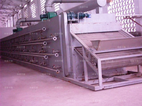 DWL顏料類(lèi)專(zhuān)用帶式干燥機(jī)組是我公司根據(jù)染料等物料壓率后高水分狀固有的特性,設(shè)計(jì)出的新型改進(jìn)型網(wǎng)帶式干燥機(jī),一般熱源等放置于右側(cè),工作時(shí),物料先進(jìn)入成形預(yù)熱機(jī)構(gòu),擠條造粒,同時(shí)也被脫去一部分水分,之后均勻分布在網(wǎng)帶上,干燥時(shí),物料從網(wǎng)帶的上方和下方強(qiáng)制輸入熱風(fēng),使被干燥的每個(gè)粒子表面都成為受熱面,增大物料與熱風(fēng)的接觸面積增加導(dǎo)熱面積,使物料內(nèi)部水份擴(kuò)散。組合成的配合使其效率更高,節(jié)能性更好 。